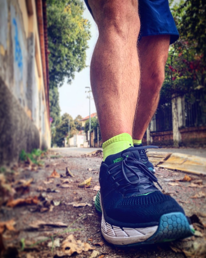 Ma veniamo al dunque. Nei primi due anni da runner ho sempre corso con un paio di scarpe alla volta. Una volta consumate, le sostituivo, e via così. Da poco invece, vuoi perché ho letto qualche suggerimento, vuoi perché avevo voglia di novità e di sperimentare, ho deciso di iniziare una rotazione di due paia di scarpe che utilizzerò contemporaneamente, idealmente per allenamenti diversi. Alle mie Adrenaline di Brooks quindi (attualmente mio punto di riferimento e comfort zone), ho affiancato un paio di Gaviota 2 di Hoka One One. Queste ultime sono in rodaggio, poiché le sensazioni con Hoka sono molto diverse (la suola molto alta rende l’impatto al suolo differente rispetto alle mie abitudini).